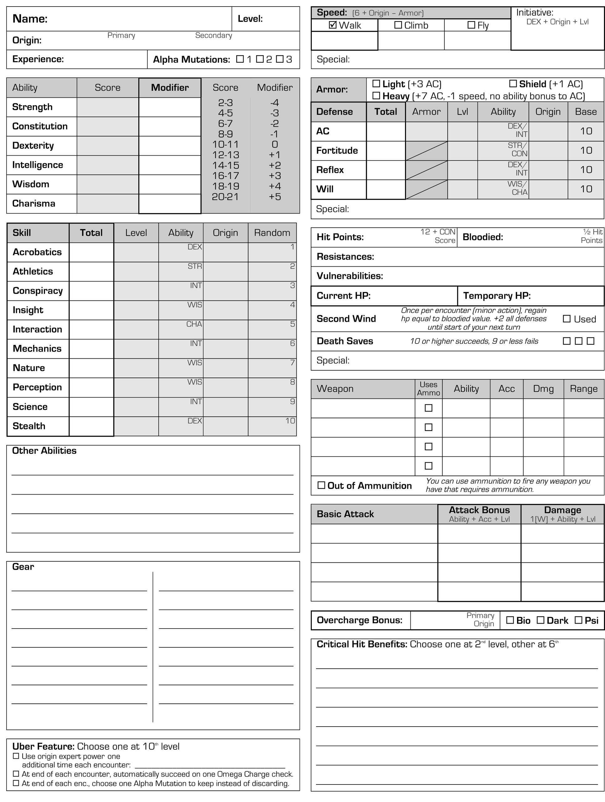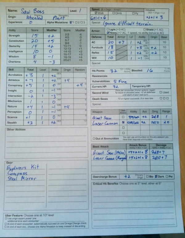 Gamma World: Character Sheet