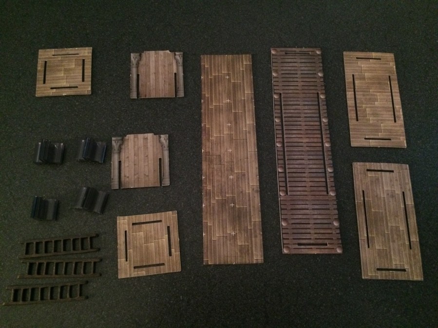 The pieces for the scaffolds came from a variety of D&D Dungeon Tiles sets, but the most useful are found in DU6 Harrowing Halls and DU7 Desert of Athas.