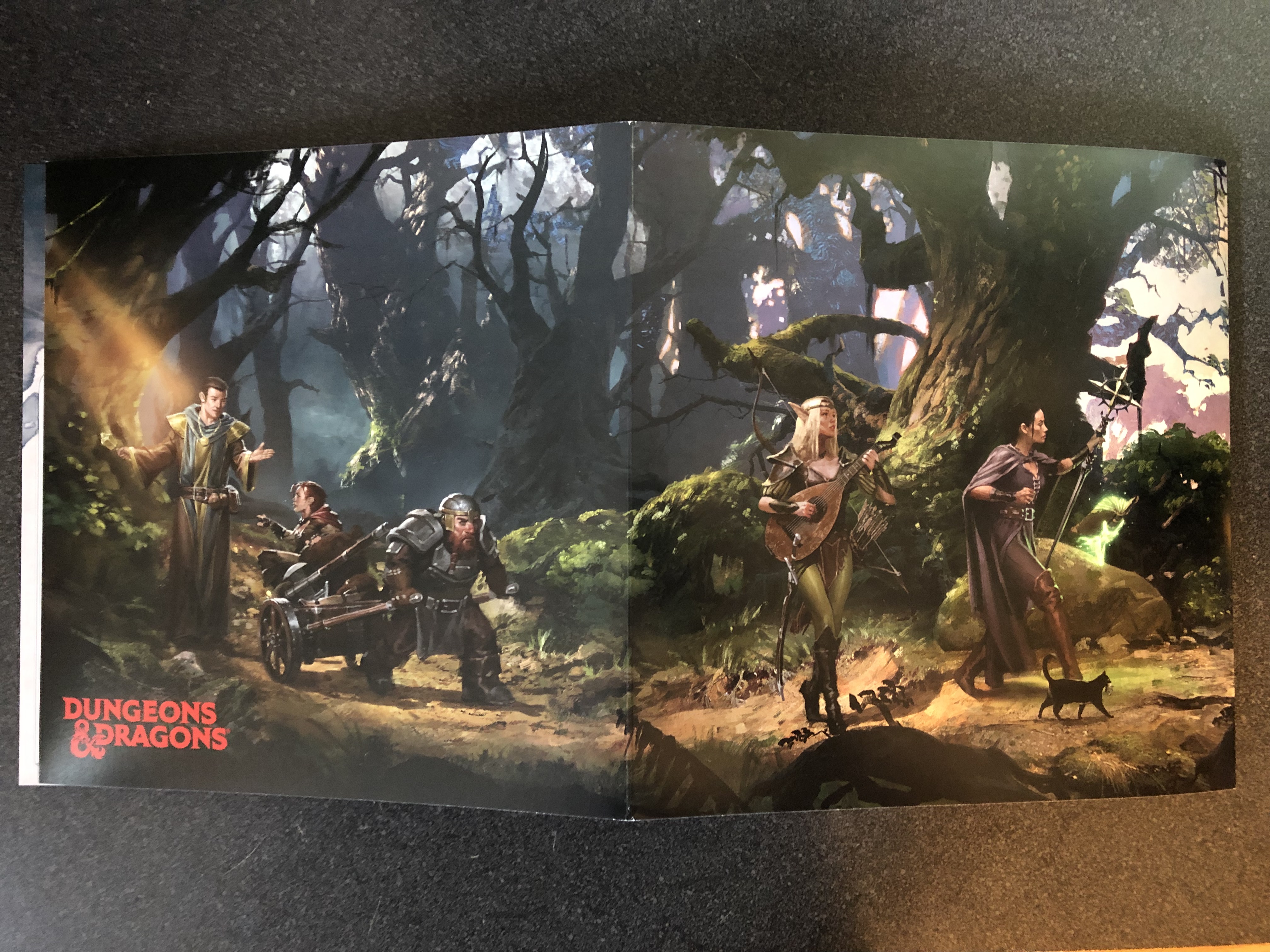 There is also a foldout DM screen with new art on the back. The DM-facing side appears to be same as the current reincarnated DM screen. The cardstock is thinner than those screens, but perfectly serviceable…