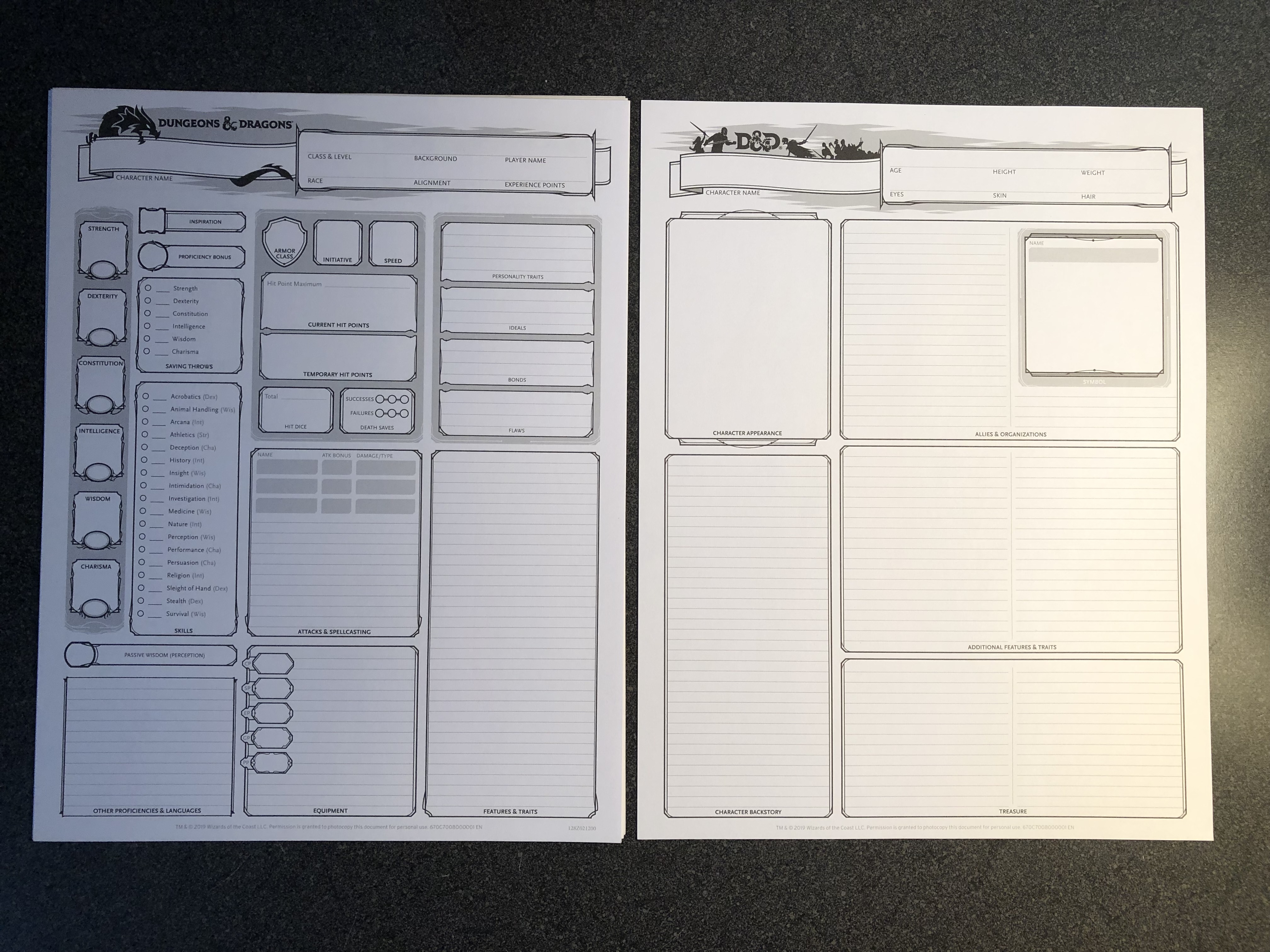 And rounding out the package is six blank double-sided character sheets (no spell page)…