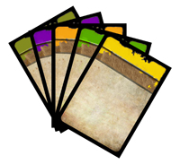 For status and ongoing damage, there are 18 scroll tokens. The status tokens come in blue, purple, and brown, and the ongoing damage tokens are green, red, and yellow. There are three each of every colored scroll token. These can be customized by marking them with a wet-erase pen.