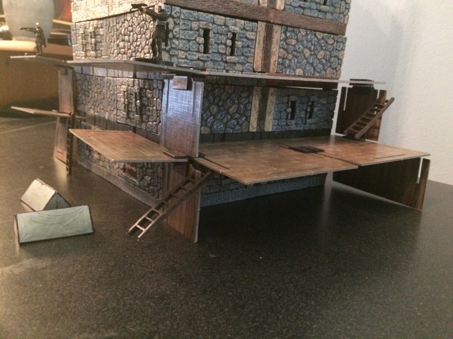 The ladders are Dwarven Forge and I placed them mostly where they would stand on their own (hooking them into notches in the tiles I used).