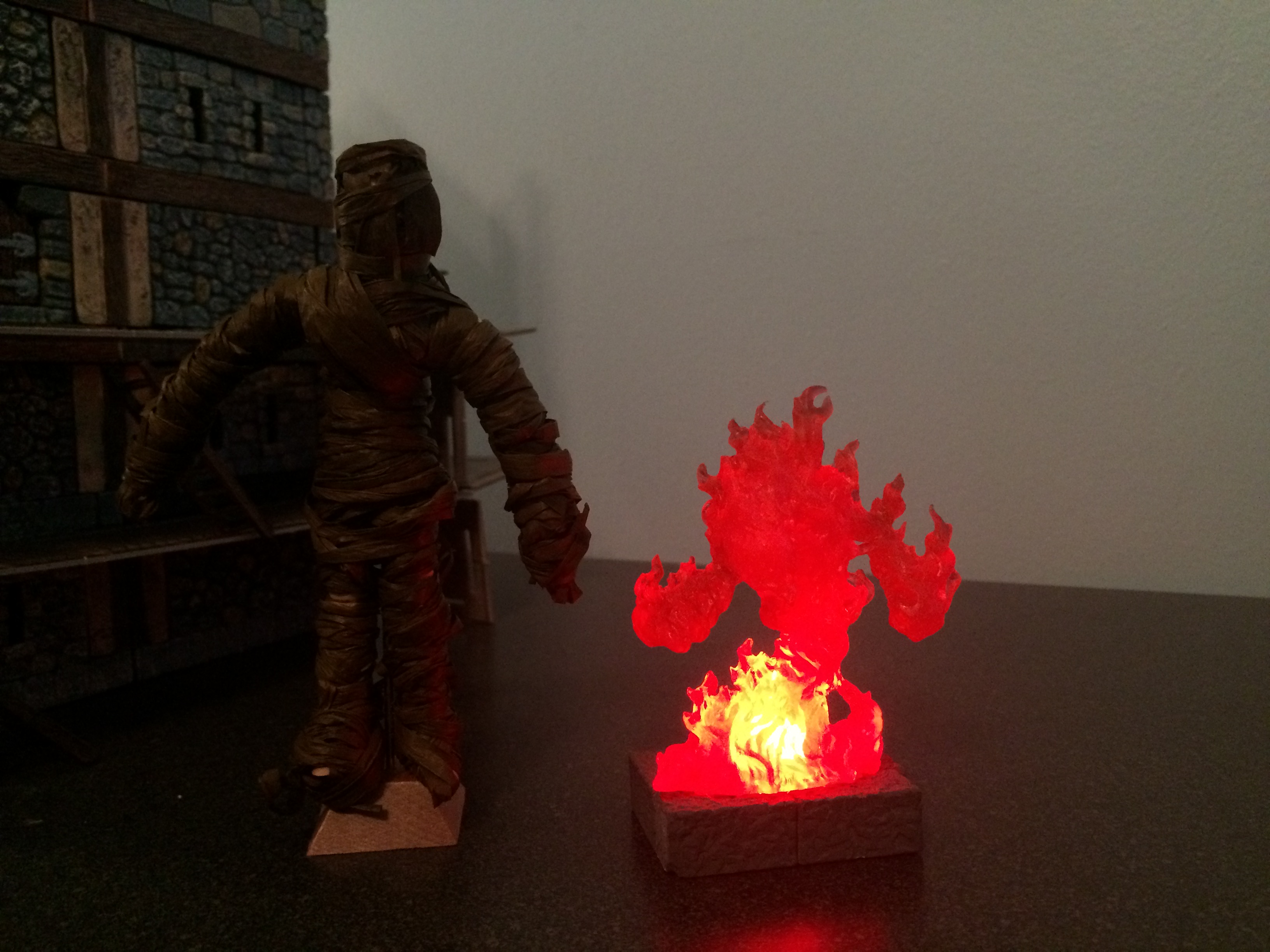 Glow from the flickering LED inside the fire elemental. I would have liked for the light to have spread more throughout the miniature, but it wouldn’t have been possible. The flickering effect made up for it, though.