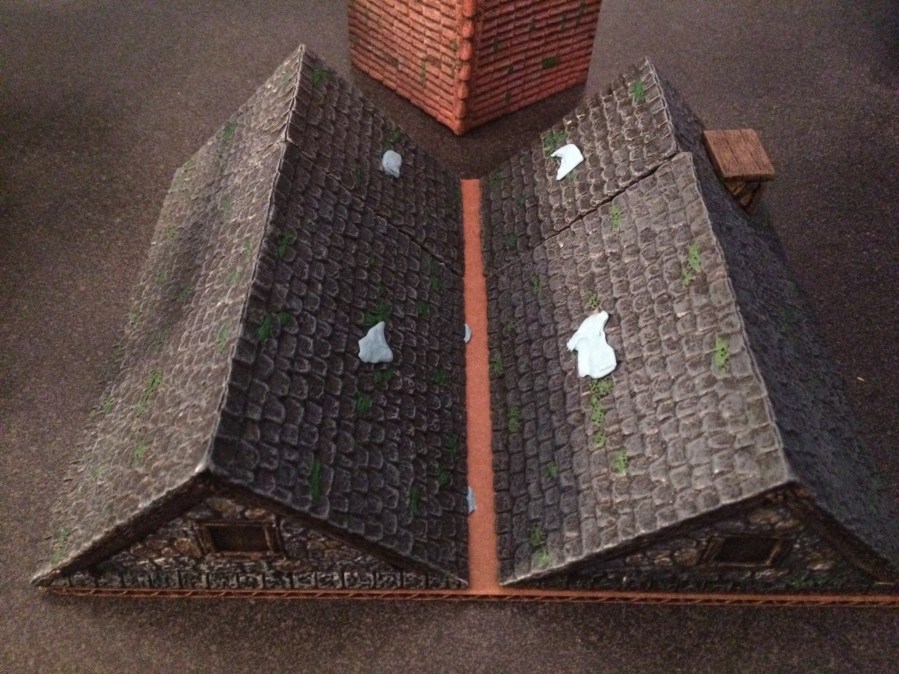 To keep the roof pieces from falling apart during transport, I used some poster tack.